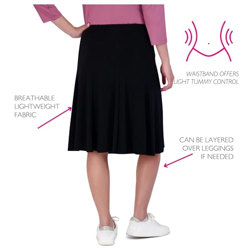 Snoga Athletics Twirly Skirt 23in Pull On Midi Fit and Flare Skirt for Women, Poly Jersey Modest Knee Length Skirt, Black XS 6