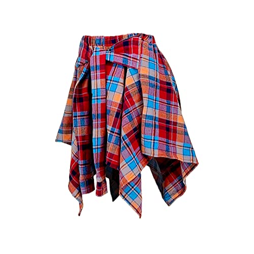 • Features: 90s vibes plaid pattern, grunge pleated design, irregular hem, flared A-line shape, and elastic waist, shirt-sleeve-style ties design, just like tying plaid overshirts around our waist.