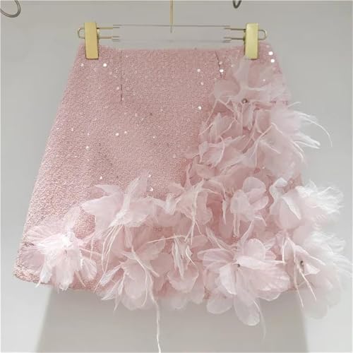 More information about Women's High Waist Tweed A Line Mini Skirt Slim Fit Sequin Applique Decoration Elegant Korean Fashion Skirt