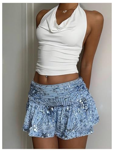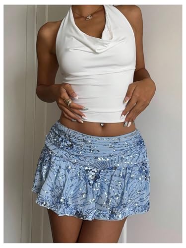 More information about MakeMeChic Women's Sequin Mini Skirt Low Waisted Glitter Sparkly Ruffle Skirts