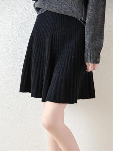 Women's Merino Wool Mini Business Skirts Solid A-Line Knitted Fashion Preppy Skirt 6