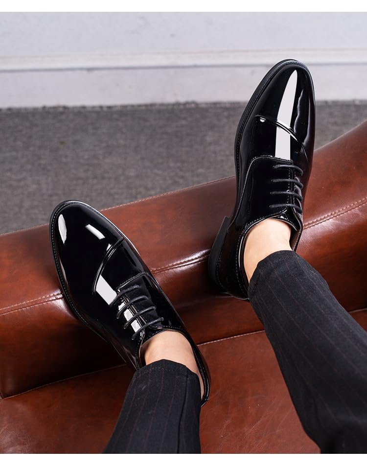HOOENG Formal Shoes Dress Oxford for Men Lace Up Pointed Toe PU Leather Shiny Oxford Shoes Rubber Sole Anti-Slip Block Heel Resistant Non Slip Business(Color:Black,Size:8) 5