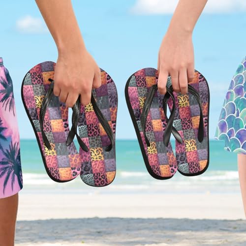 Flip Flop Sandals Leopard Checkered Print for Women Men Beach Outdoor XS 4