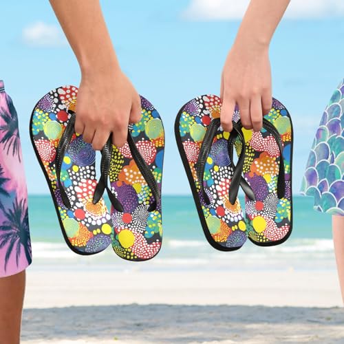 HOT ! Colored Abstract Circle Flip Flop Sandal for Women Men, Casual Beach Slippers Indoor Outdoor XS