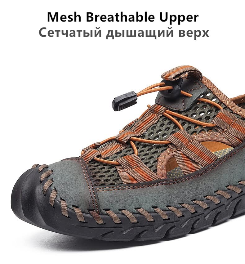 More information about Leather Men Sandals Handmade Green Casual Shoes Platform Outdoor Men's Beach Sandals