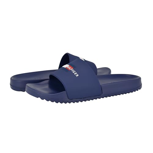 • Perfect for a vacation or just a day in the warm weather. These slides feature the brand's flag logo for an added fashion element. Throw on your favorite shorts and slip into these for a nice day out. Est. 1985, Tommy Hilfiger is a leading lifestyle brand celebrating the essence of American style.