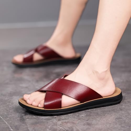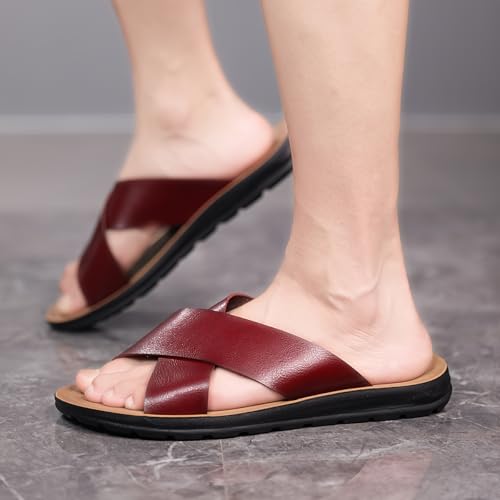 • 【High-quality material】: Men's slippers are made of soft second-layer cowhide. The texture is soft and elastic, with good breathability, so your feet are no longer stuffy. The polyurethane sole is non-slip, with a three-dimensional sole texture and strong grip, ensuring comfortable wearing and long-lasting use.