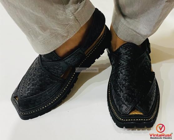 HOT ! Handmade Leather Peshawari Chappal Sandals - Woven Design