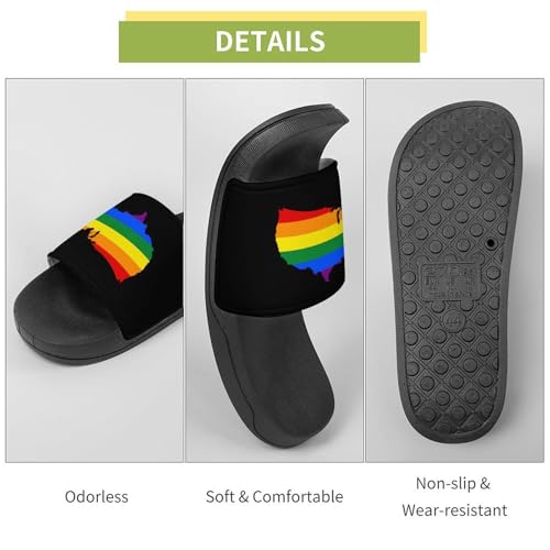 HOT ! LGBT U.S. Flag Map Non Slip Slides Sandals for Women Men Quick Drying Shower Shoes for Bathroom Pool Beach