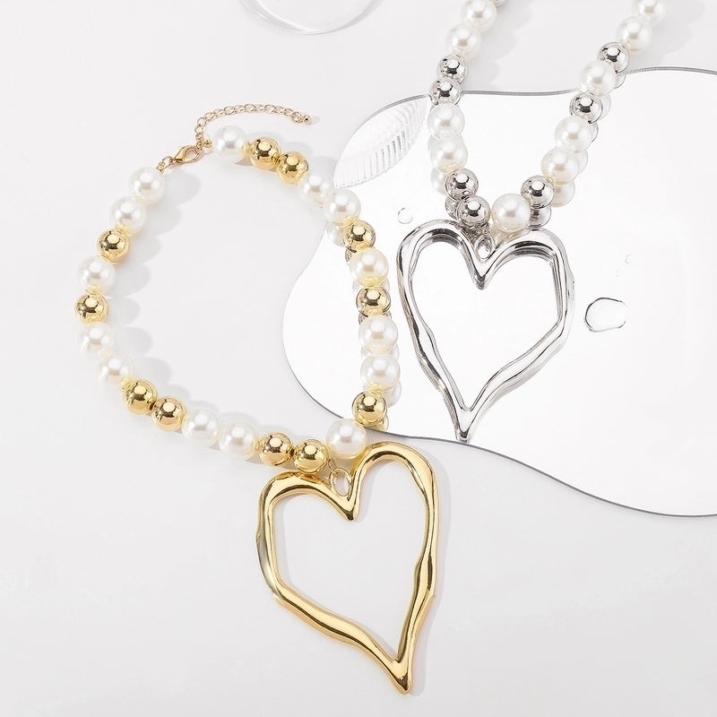 Exaggerated Beach Conch Heart Shape CCB Imitation Pearl Alloy Pendant Necklace 2