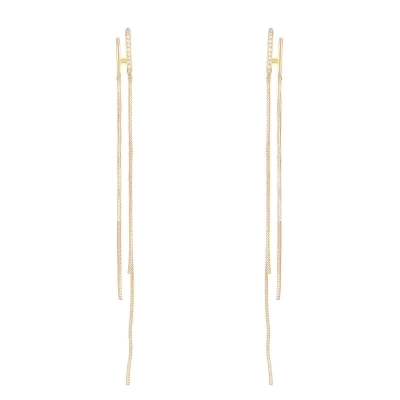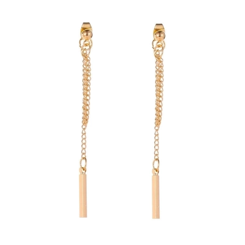 HOT ! 1 Pair Vintage Style Geometric Solid Color Tassel Plating Chain Copper Drop Earrings