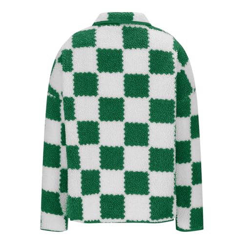 HOT ! Sherpa Jacket Women Fashion 2024 Checkered Color Block Button down Long Sleeve Lapel Fleece Coat Casual Warm Outwear