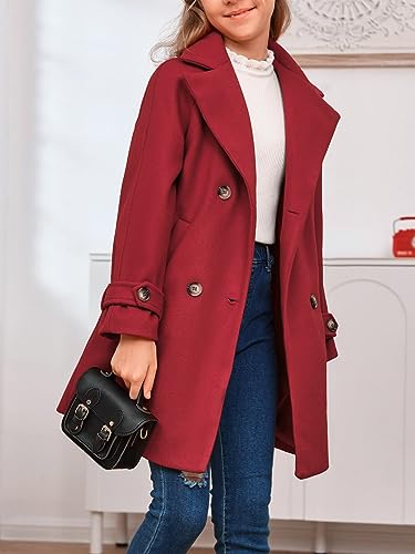 rrhss Girls Wool Blend Coat Double Breasted Classic Jacket Spring Fall Outwear Dress Coats With Pockets 6
