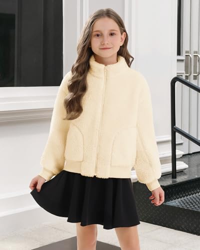 Stelle Girls Sherpa Jacket Fall Fleece Coat Full Zip Winter Fuzzy Outerwear with Pockets for 4-15 Years 6