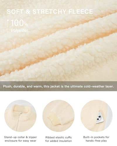 • Fuzzy & Fashionable: Cold temps are no match for this ultra-soft kids’ fleece jacket. With cozy linings inside and out, it keeps little ones warm all fall and winter.
