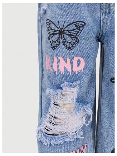 GORGLITTER Girl's Baggy Jeans Denim Ripped High Waisted Butterfly Graphic Print Straight Wide Leg Cargo Joggers Pants 5