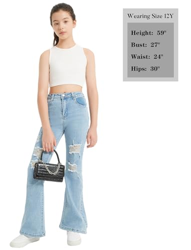 EXARUS Girls Flare Jeans Bell Bottom Teen Denim Pants Flared Ripped Cute Bootcut Mid Rise Elastic Band Pockets Kids 5