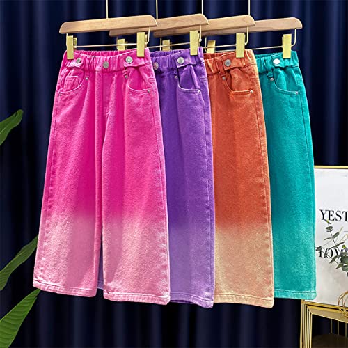 Girls' Baggy Jeans Candy Colors High Rise Elastic Waist Wide Leg Washed Denim Pants Size 5-14 Years … 2