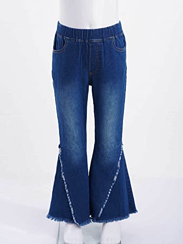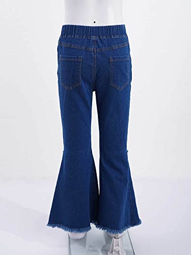 YiZYiF Girl's Ripped Flare Jeans Raw Hem Bell Bottom Elastic Waist Denim Trousers Casual Loose Fit Long Pants 6