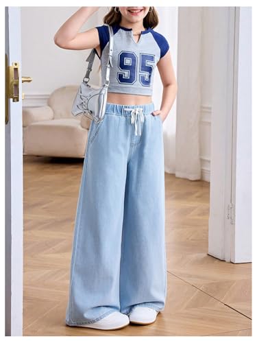 More information about WDIRARA Girl's Elastic Waist Baggy Jeans Casual Wide Leg Denim Pants with Pockets