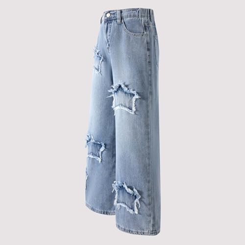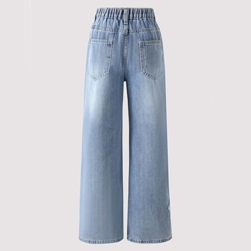 Girls Jeans Vintage Y2K Denim Pants Elastic Waist Straight Leg with Pockets Cute Teenager Clothes for Girls 8-14 Years 7