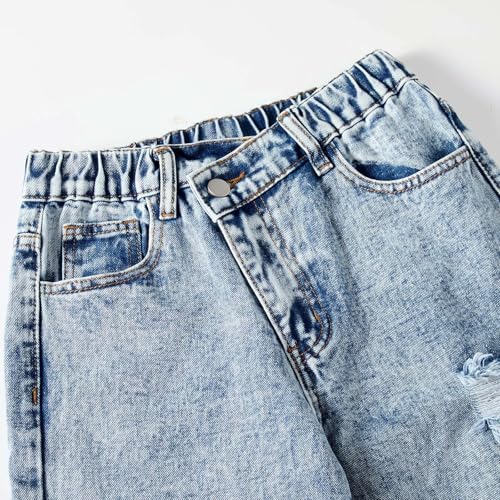 • Comfortable High Elastic Waistband: Designed with a soft, stretchy high waistband that offers a comfortable and flexible fit, perfect for all-day wear. The elastic waist ensures easy wearability and movement, making these jeans ideal for school, play, or everyday activities.