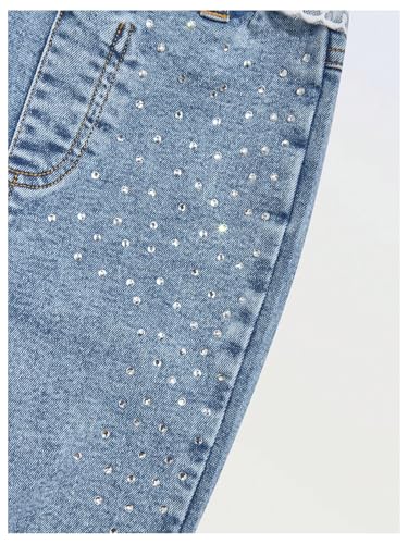 GORGLITTER Girl's Rhinestones Flare Jeans Lace Bow Elastic High Waist Jeggings Bell Bottom Denim Pants 6