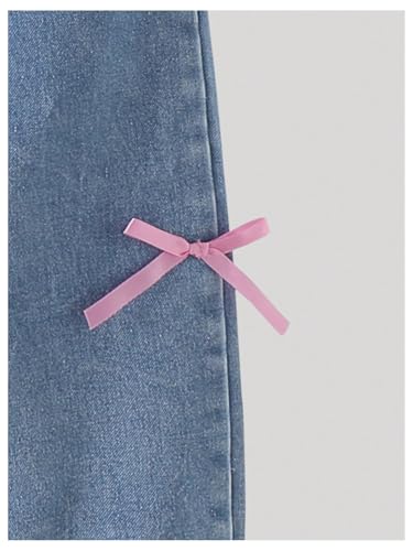 • Kawaii Jeans, Teen Girl Clothes, Baggy Trousers for Young Girls, Elastic Waist, Wide Leg, Bow Tie, Casual Style