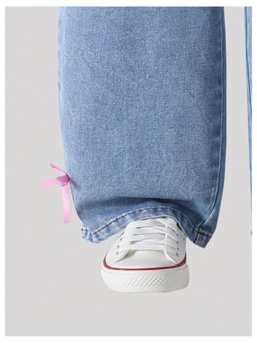 Verdusa Girl's Kawaii Bow Tie Denim Pants Elastic Waist Wide Leg Baggy Jeans 6