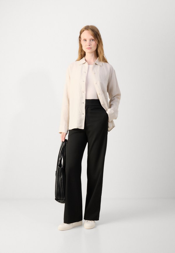 BLOUSE SHIRT COLLAR LONG SLEEVE  SOLID - Button-down blouse - silky stone 1