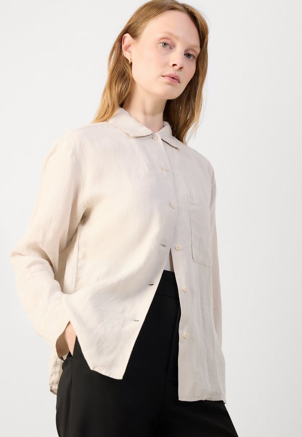 BLOUSE SHIRT COLLAR LONG SLEEVE  SOLID - Button-down blouse - silky stone 7