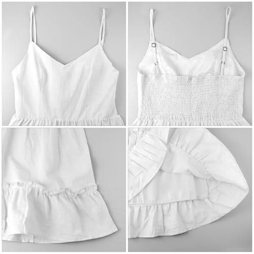• DESIGN: This is a cute high waisted Sleeveless babydoll dress.Its flowy and not super fitted. Spaghetti Strap summer dress with tiered skirt. Loose Fit. Above knee length casual t shirt dress with two side pockets, sexy v neckline.