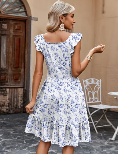 HOT ! Zeagoo Womens Summer Dress Casual Ruffle Tiered Floral Square Neck Sundresses Beach Boho Mini A-line Dress 2025 with Pockets