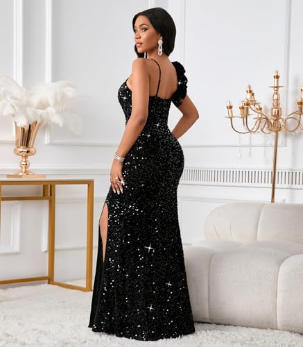 More information about Cololura Women Sexy Elegant Sequin High Split Ruffled Hem Mermaid Party Cocktail Bodycon Formal Evening Gowns Maxi Dress