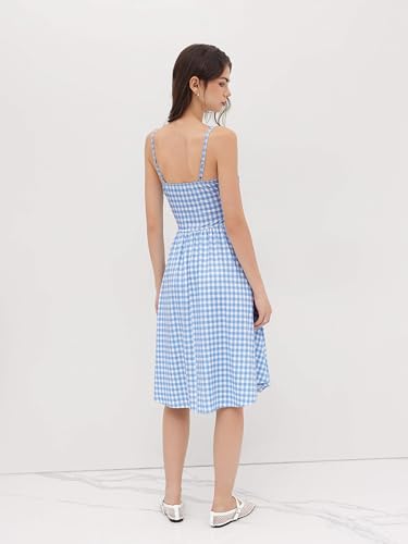 CIDER Women's Summer Gingham Midi Dress Sleeveless Ruched Plaid Dress Spaghetti Strap Dresses Casual Trendy 7