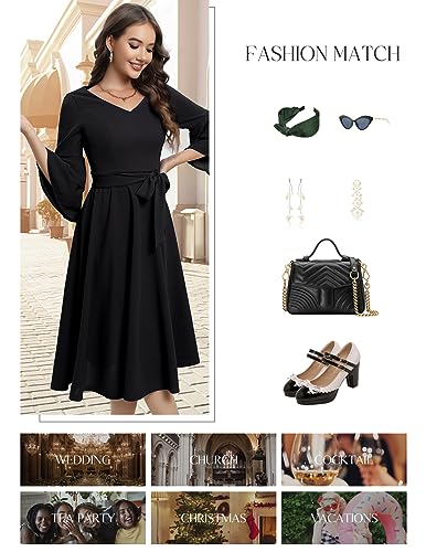 • Designed for Comfort: This holiday dress is made of highly breathable skin-friendly fabric that will keep you feeling comfortable and elegant for a long time. V-Neck, 3/4 bell long sleeves and a fitted waistline that accentuates your curves in all the right places and slim your arms nicely, creating an effortlessly flattering vintage look that's perfect for any season. Easily paired with a variety of accessories, this cocktail dress is a must-have for any wedding guest closet