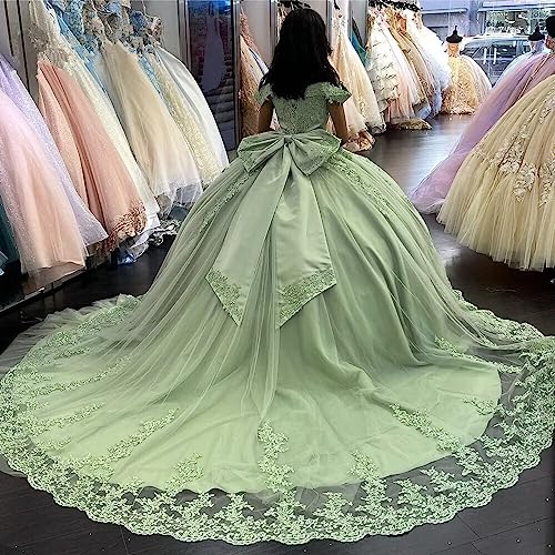 Youjiayi Princess Off Shoulder Quinceanera Dresses Puffy Lace Tulle Sweet 16 Dress with Train Big Bow Long Ball Gowns 5