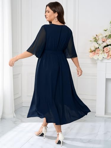 More information about Plus Size Formal Wedding Guest Cocktail Dress for Curvy Women Flutter Sleeve Faux Wrap V Neck Midi Dresses