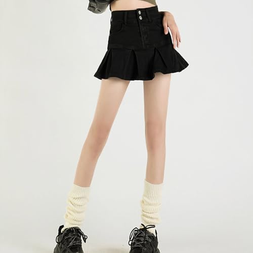 More information about Women Highs Waist Ruffle Pleated Denims Skirt A Line Short Skirt Casual Jeans Skirt Streetwears Gifts
