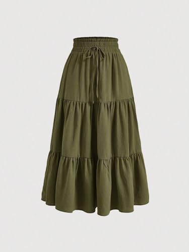 Solid Color Tie Front Ruffle Hem Long Skirt 2025 Fashion Skirts for Women 5