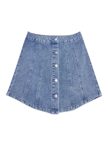 Women’S Empire Waist A-Line Denim Skirt with Single-Breasted Button Detail Slight Stretch Knit Jean Mini Blue XXL 6