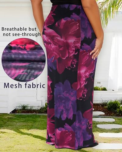 Women's Maxi Skirt Mesh Floral Print Casual High Waisted Elastic Bodycon Fishtail Hem Vacation Long Skirts 6