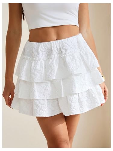 HOT ! Women's Ruffle Flowy Mini Skirts Y2K Low Rise Ruched Layered A Line Coquette Skirts