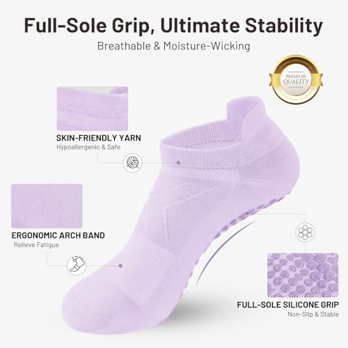 • Comfortable & Breathable: Crafted from high-quality cotton, these moisture-wicking yoga socks offer excellent breathability, keeping your feet dry and comfortable throughout your workouts. Perfect for all seasons, they provide an optimal experience anytime, anywhere.