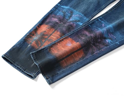 • 【Versatile and Classic Style】 Classic 5 pockets design, zip fly and button closure. Cool stylish 3D pattern, vintage wash fabric, light blue, blue, vintage blue