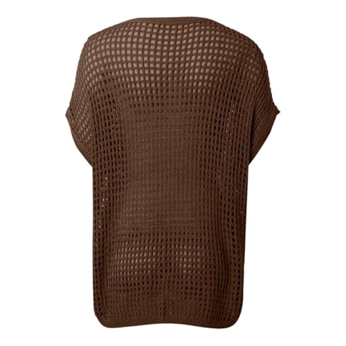 Womens Summer Scoop Neck Short Sleeve Sweater Casual Crochet Hollow Out Knit Tops Pullover Shirts Beach Coverup 2025 Shirts 2