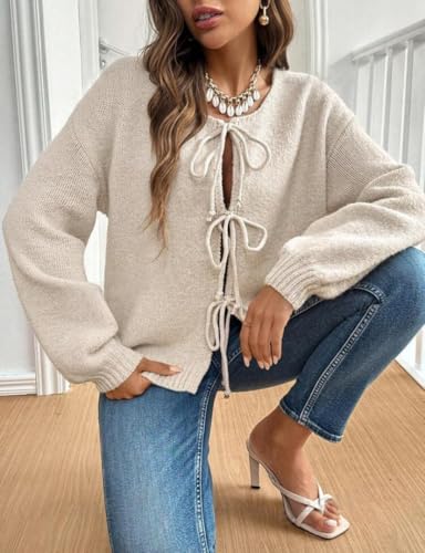 • 【Statement Tie Front Design】This women’s sweater cardigan features a unique tie-front design with three bows, offering both charm and adjustability. for those who love pink clothing and trendy womens fall sweaters