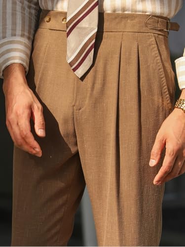 Vintage Men's Linen Casual Pants Relaxed Fit Spring Cotton Trousers with Adjustable Waistband 6