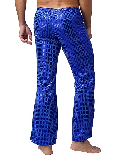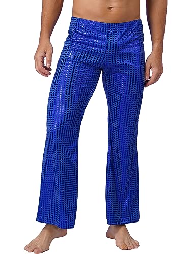 Men's Sequins Metallic Flared Pants Leggings Sparkly Smooth Skinny Disco Trousers Clubwear 7
