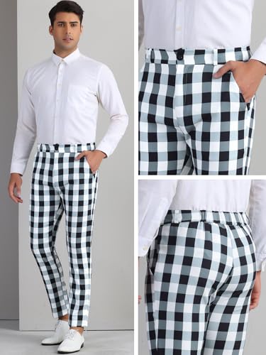 Lars Amadeus Gingham Plaid Pants for Men's Flat Front Trousers Business Tartan Dress Pants 4